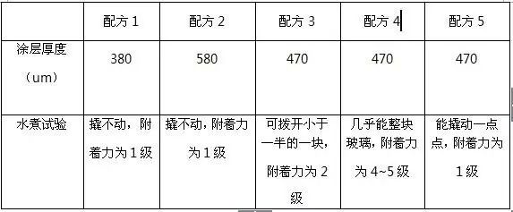 將上述5個配方粉末涂料涂塑后的黑鐵管樣件,在恒溫水浴鍋中進行水煮試驗,結(jié)果列于表2中。